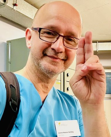 Ich bin bis heute selbst in der Gerontopsychiatrie praktisch tätig und – auch wenn ich am frühen Morgen manchmal noch müde bin (siehe Foto) – mit großer Überzeugung dabei.